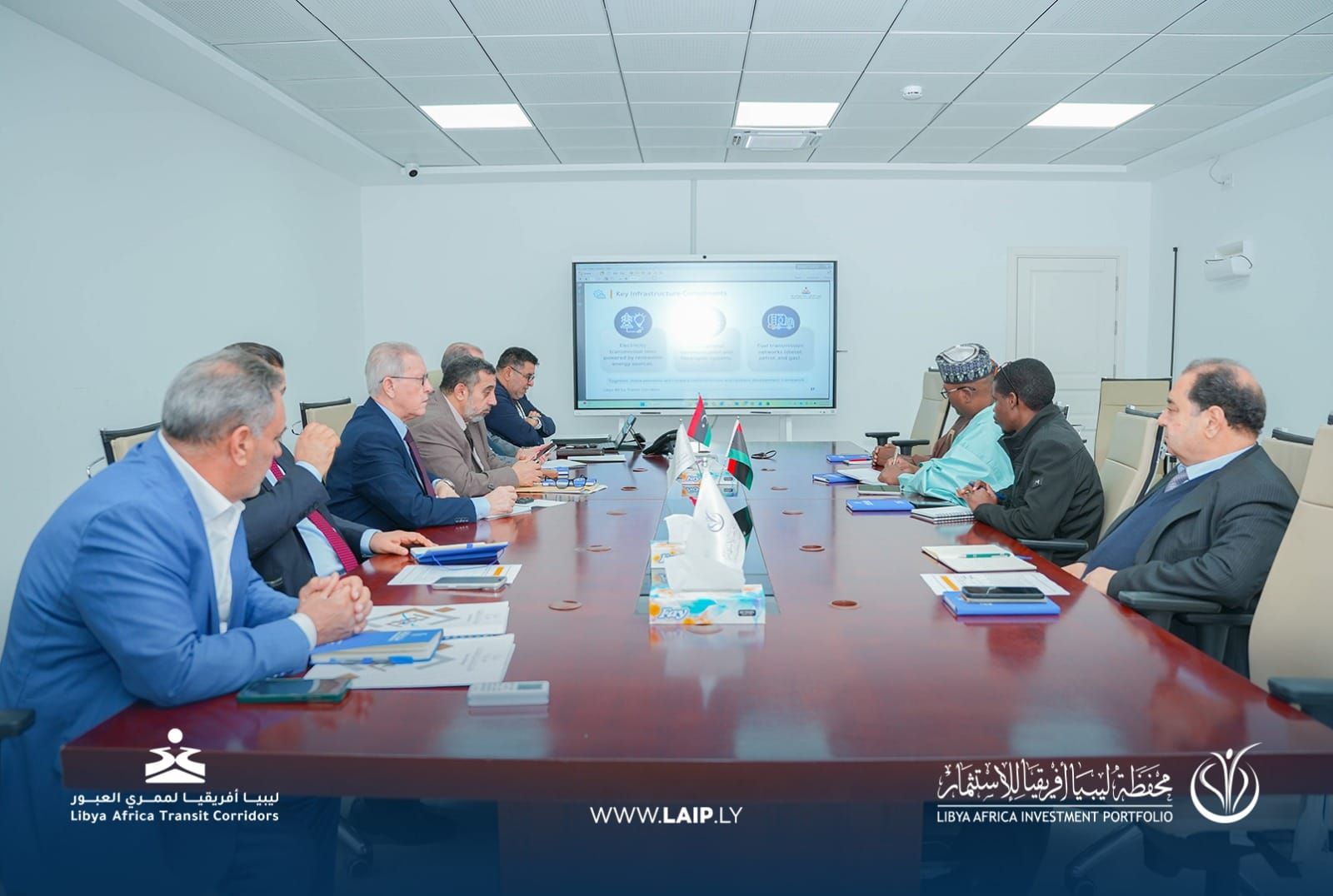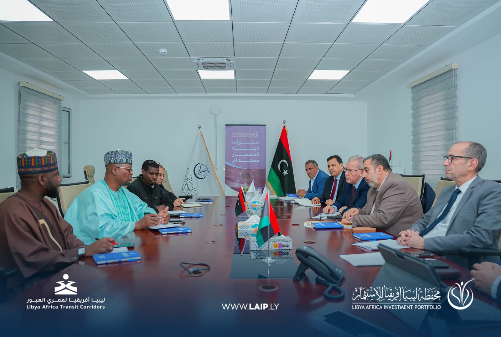 The delegation was received by the Chair and members of the High Committee for the Libya Africa Transit Corridors Project.